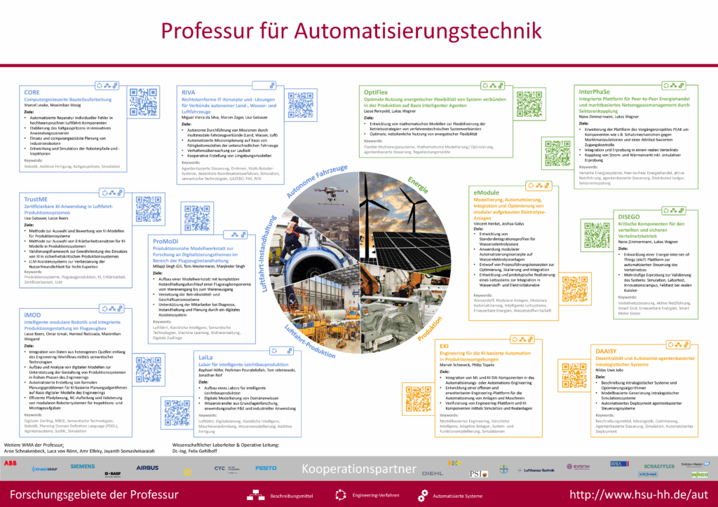 An der Professur werden verschiedene Forschungsprojekte zu den im Überblick genannten Forschungsgebieten bearbeitet. Für nähere Informationen wenden Sie sich gerne an Herrn Dr.–Ing. Felix Gehlhoff (operative Leitung der Professur).