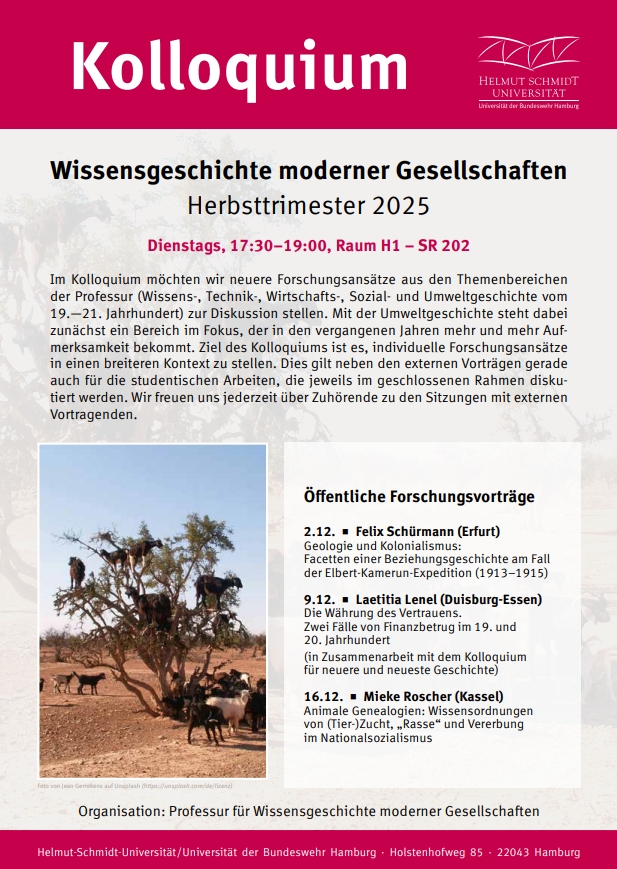 - Unser Teammitglied Mona Bieling hielt am Montag, den 05.05.2025, an der Boğaziçi University in Istanbul einen Vortrag über das Thema „Tropical Agriculture between Hamburg and the World: Institutions, Networks, and Knowledge Exchange, 1880s-1930s“. Der Flyer ist hier zu finden.