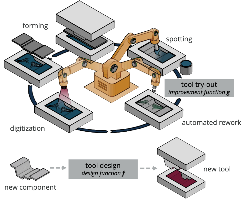 Das Forschungsprojekt verfolgt das Ziel, die bislang überwiegend manuell durchgeführte Werkzeugeinarbeitung in der Blechumformung datenbasiert zu unterstützen und langfristig zu automatisieren. Im Fokus steht die Entwicklung von Machine-Learning-Methoden, die auf Basis