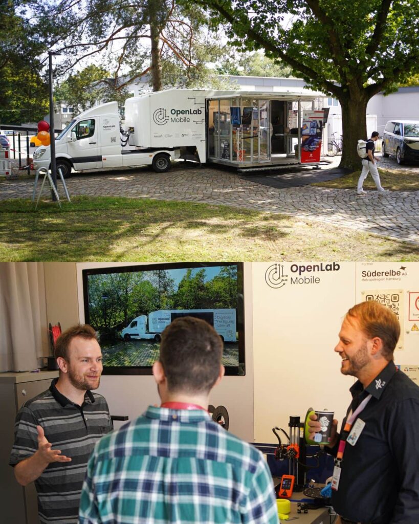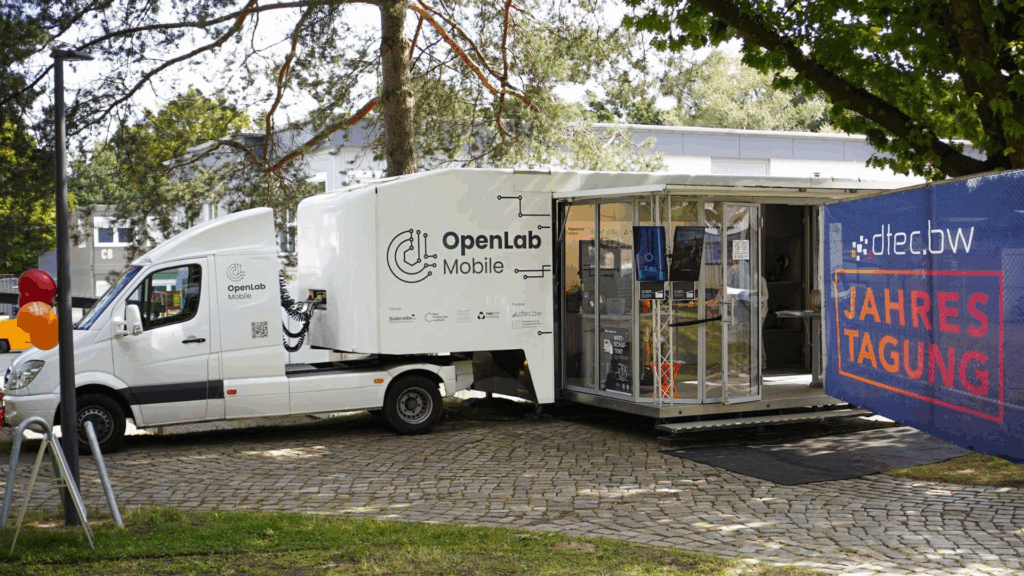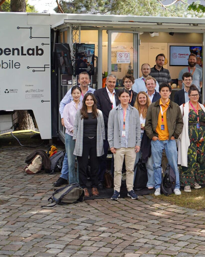 Begleitend zu unserem Konsortialtreffen präsentierten wir das Fab City-Projekt im OpenLab Mobile Truck – mit Filmen, Exponaten und Live-Demonstrationen. Die interaktive Umgebung bot den idealen Rahmen für inspirierende Gespräche darüber, wie lokale Produktion und Ansätze der Kreislaufwirtschaft zur Resilienz und Innovationsfähigkeit unserer Gesellschaft beitragen können.