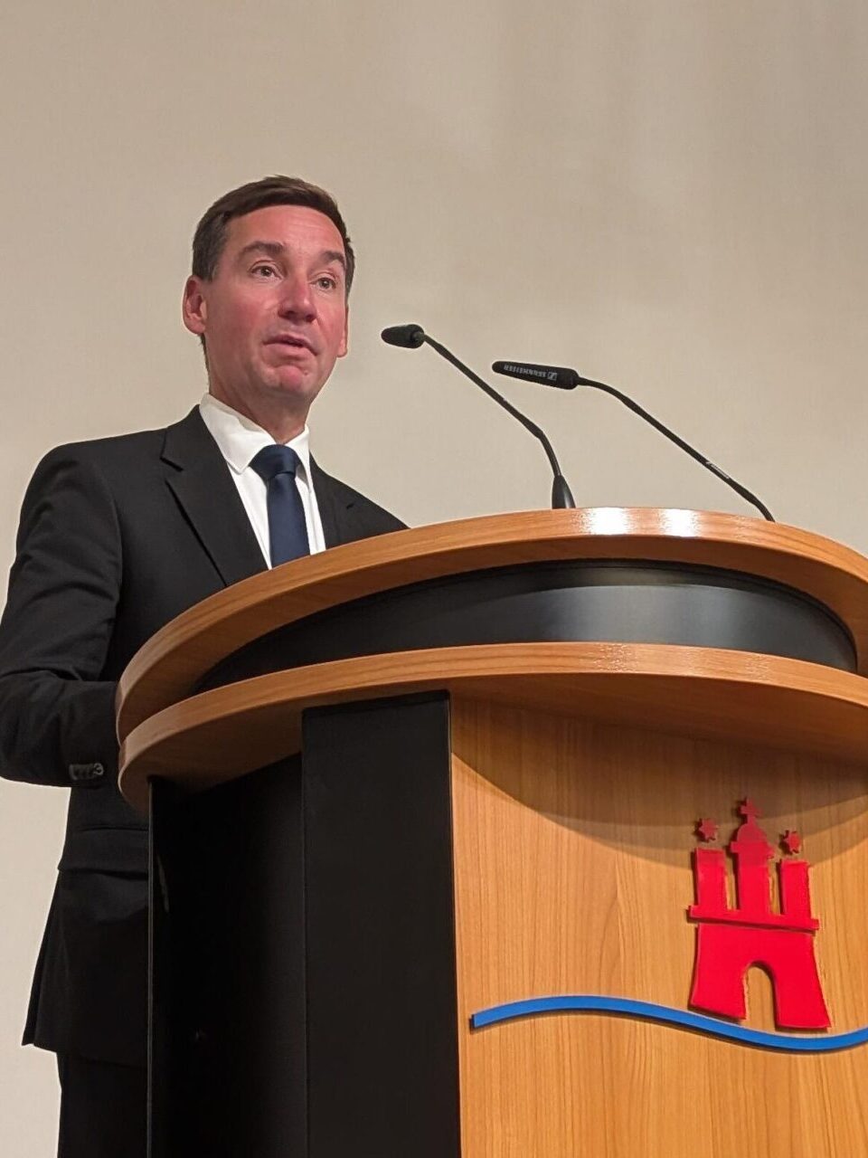 Der öffentliche Anteil des Netzwerktreffens in Form der Abendveranstaltung mit Paneldiskussion fand in der Landesvertretung der Freien und Hansestadt Hamburg statt. Nach einer Begrüßung und Einführung durch den Parlamentarischen Staatssekretär im BMVg, Sebastian Hartmann, folgte eine Paneldiskussion mit verschiedenen Perspektiven. Unter der Moderation von Frau Sophie Witte diskutierten PSts Hartmann, Staatssekretärin Claudia Elif Stutz (BMV) und Frau Karina Würtz (Stiftung Offshore) über die gemeinsame Verantwortung für die maritime Sicherheit Deutschlands. Im Mittelpunkt stand die Rolle von Politik, Abstimmungen zwischen Behörden und Wirtschaft sowie die Frage, wie maritime Sicherheit künftig ganzheitlich gedacht werden kann.